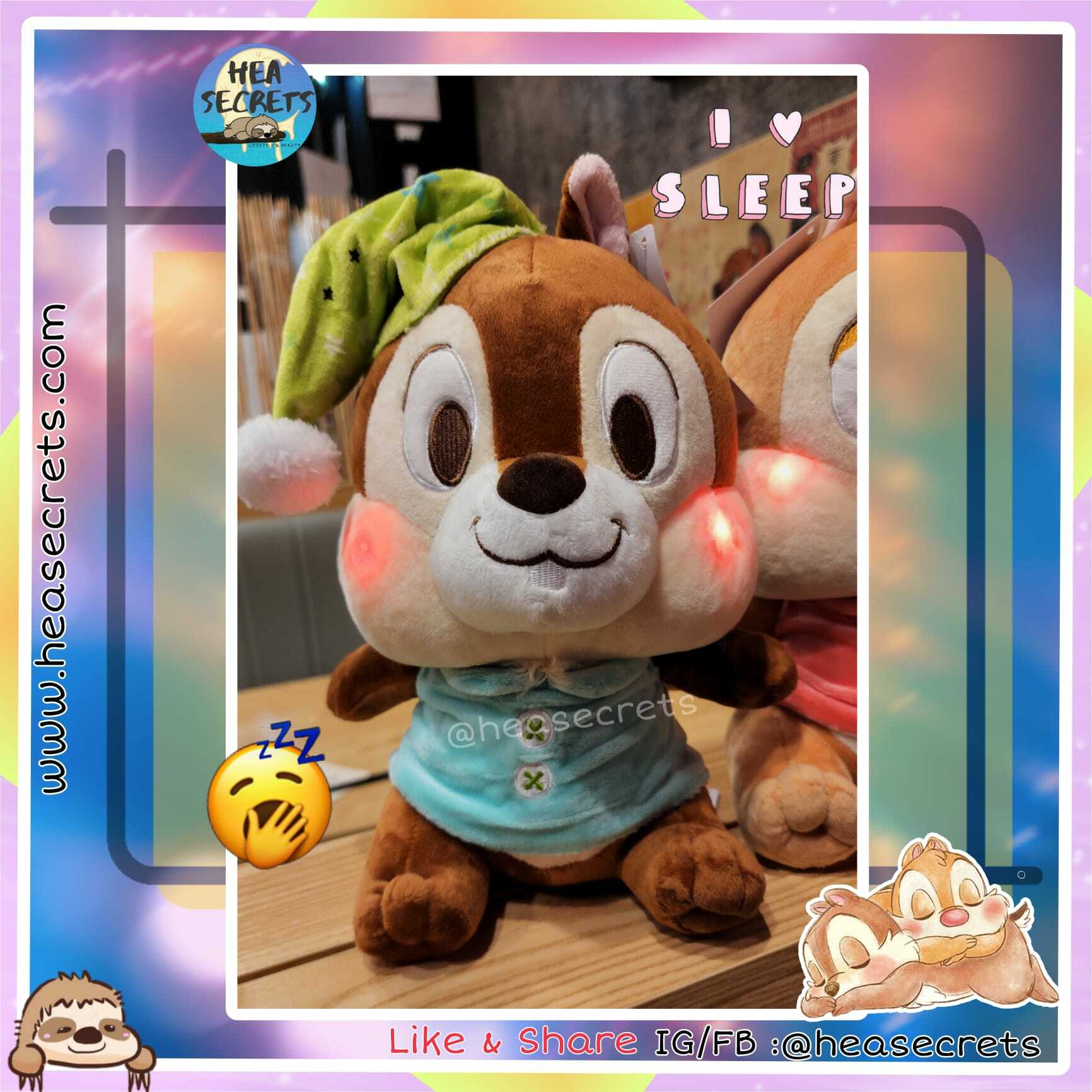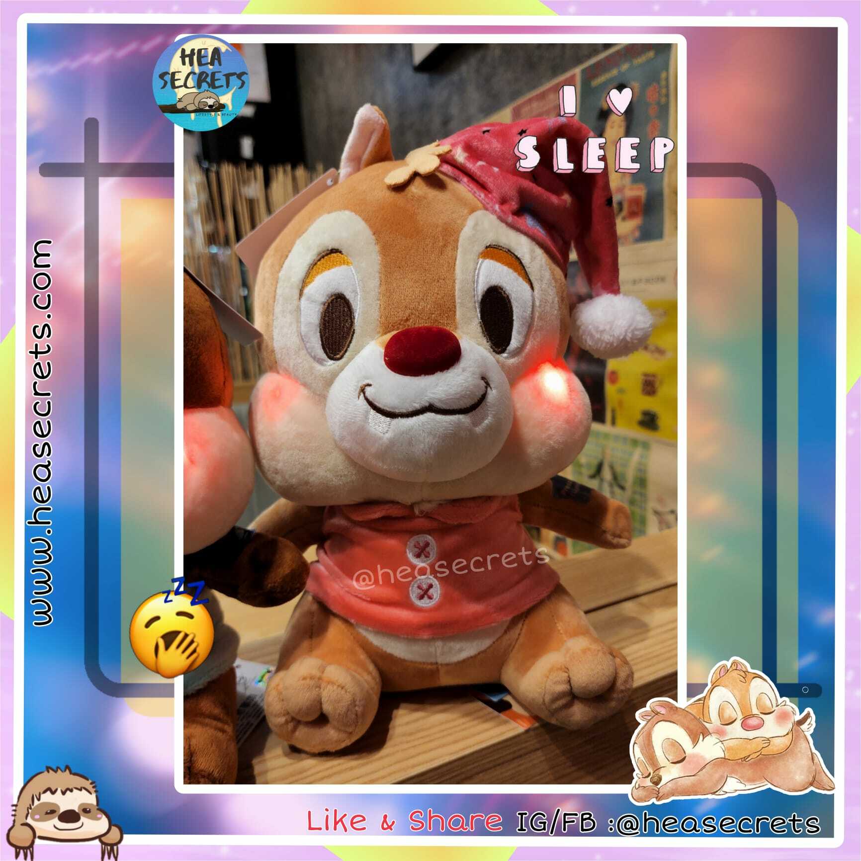 台灣代購 100%迪士尼正版 chip N dale面紅紅甜睡公仔 大公仔專賣店 奇奇蒂蒂 鋼牙大鼻 花鼠 12吋 啡色 睡覺 怕羞 臉都紅埋
