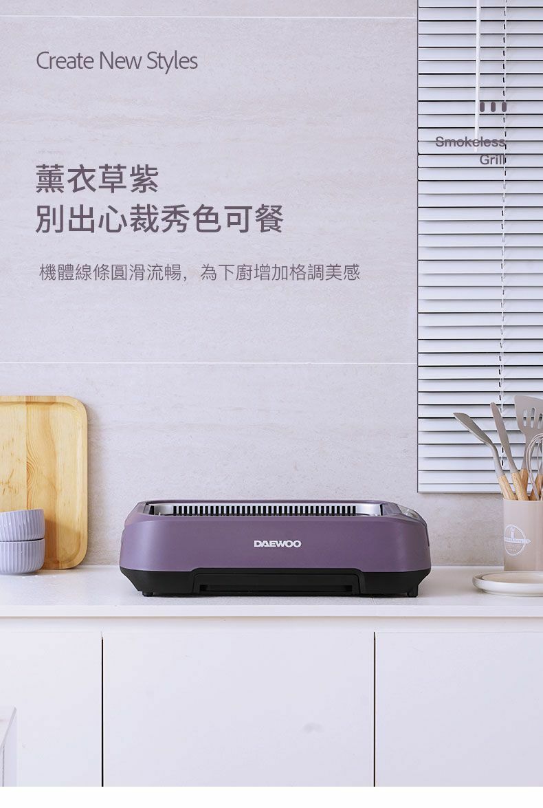 * 產品採用薰衣草紫色, 機體線條圓滑流暢,為下廚增加格調美感