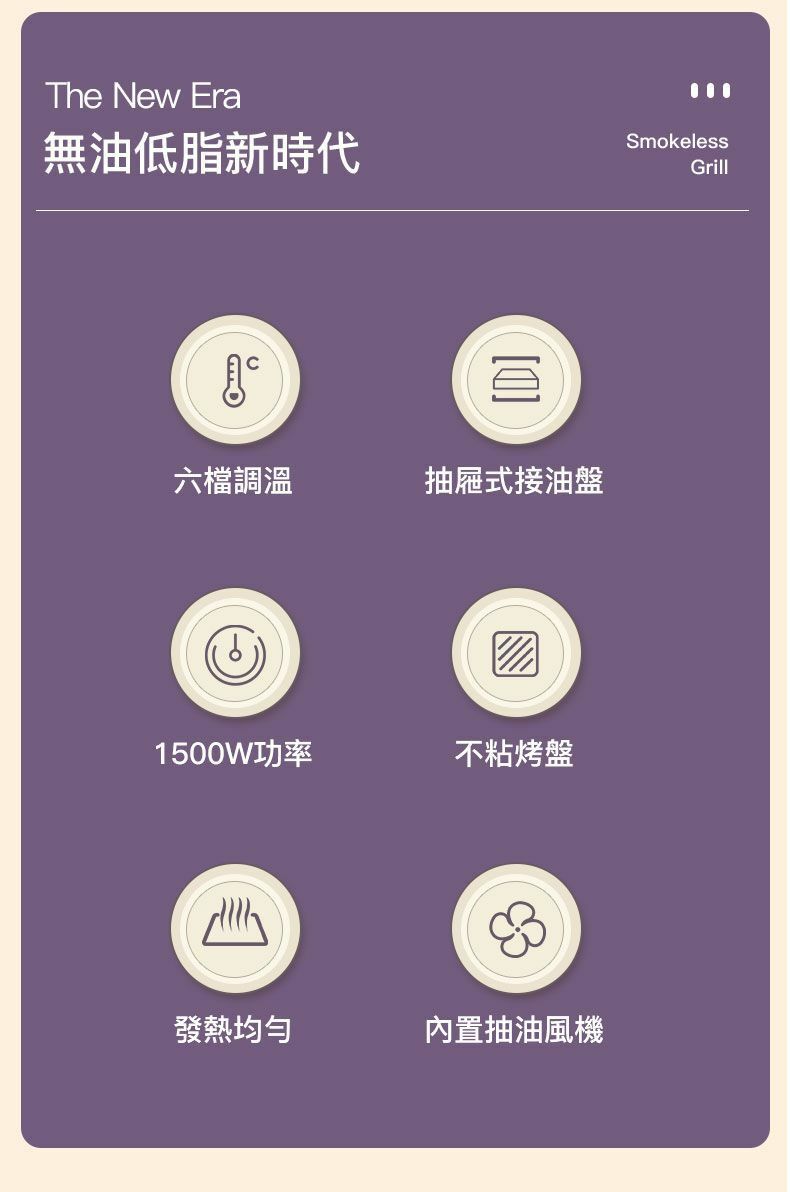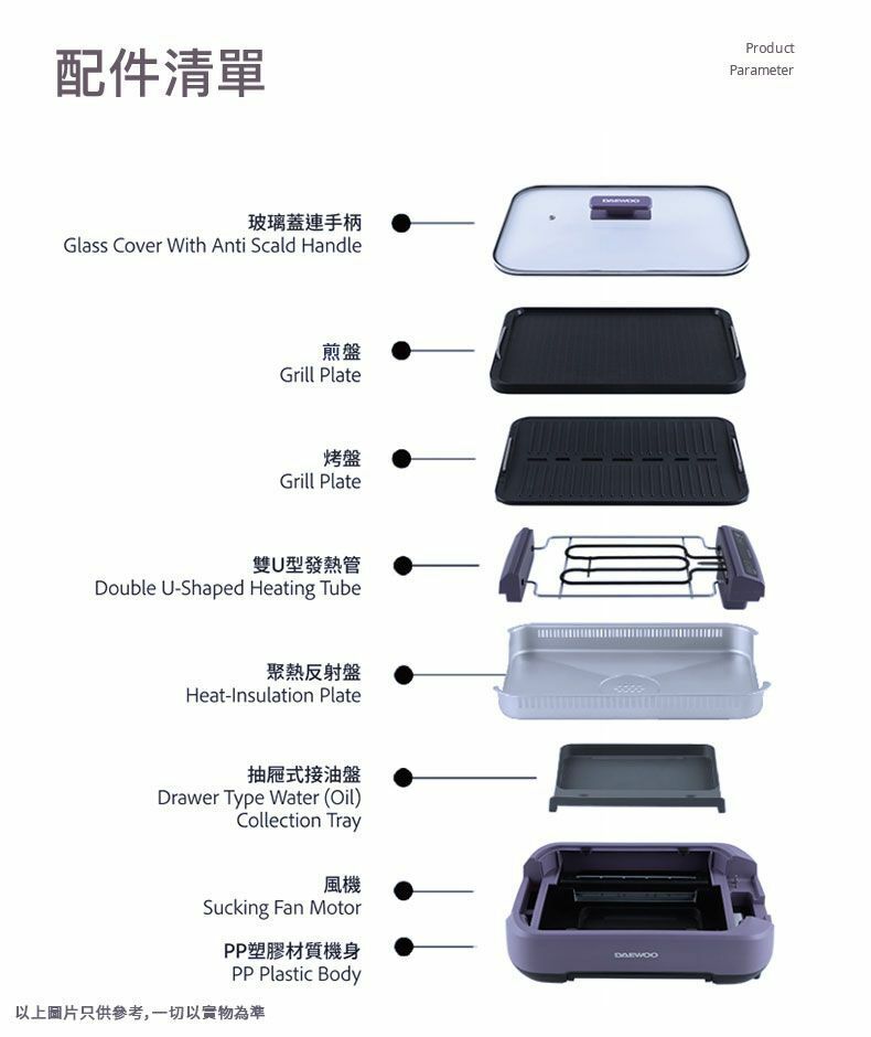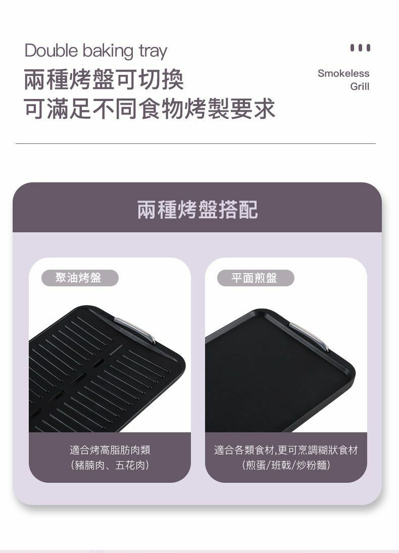 * 附送兩個燒烤盤: 平盤及聚油烤盤各一個,可以隨意更換,不用另外再購買。