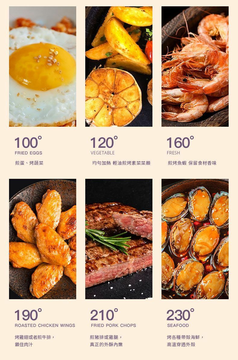 實時顯示溫度, 六檔控溫調節, 可以輕鬆調教為適合不同食物的所需溫度。