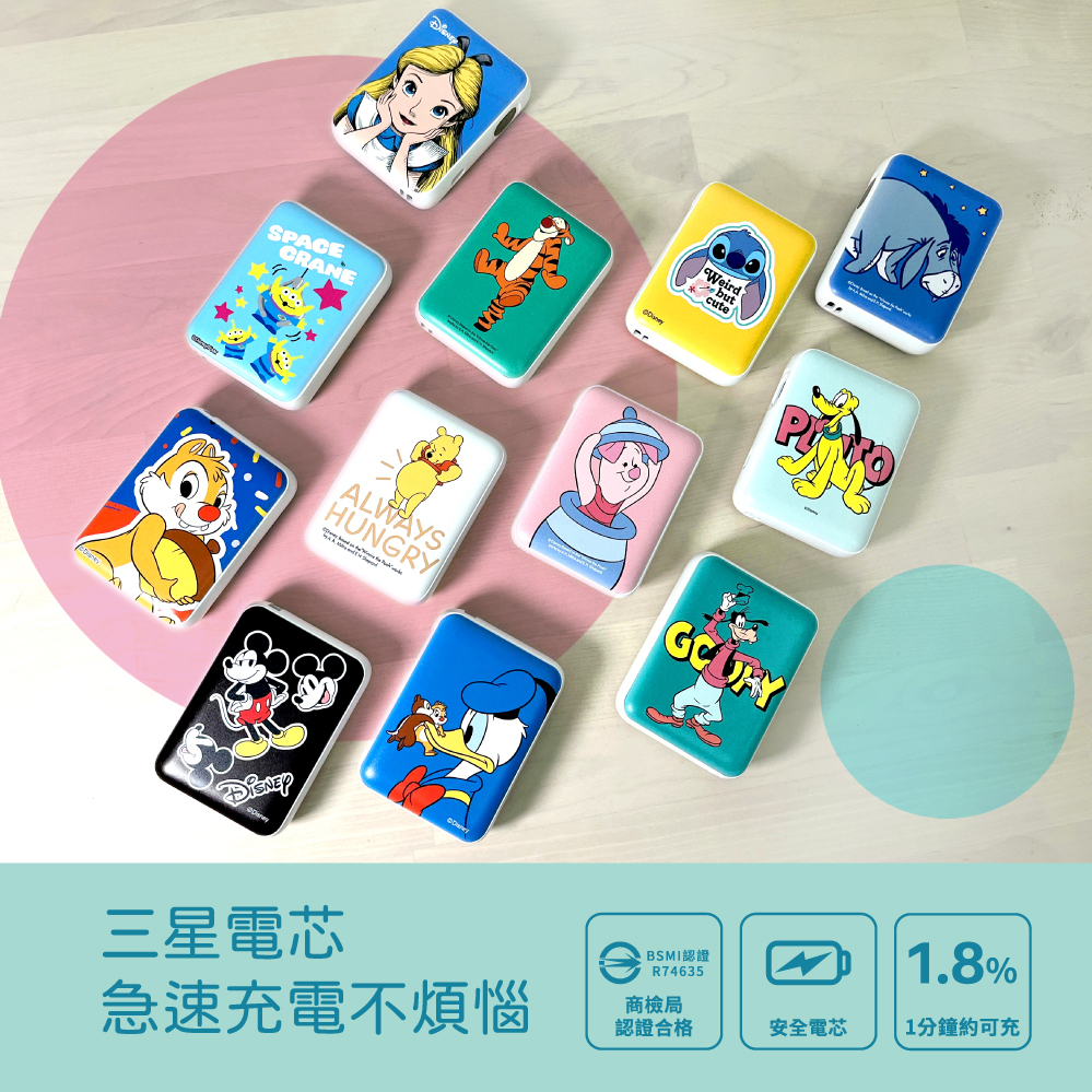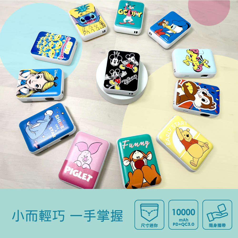 台灣直送 Disney正版授權 迪士尼系列 口袋行動電源 細細個 超細 紙巾咁細 出街必備 TYPE C 快充 電量指示 卡通人物 小熊維尼 史迪仔 唐老鴨 米奇 豬仔 CHIP N DALE 跳跳虎 愛麗斯 三眼仔 高菲狗