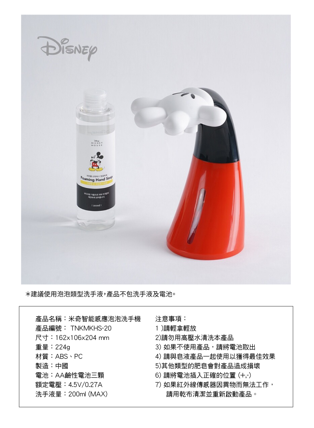 韓國直送 迪士尼授權 Disney 自動感應 泡泡 洗手液機 【Mickey Mouse 米奇老鼠】 No.1抗疫用品 防疫 清潔好幫手 泡泡 洗手 小朋友最愛 食飯洗手 手套 米奇隻手
