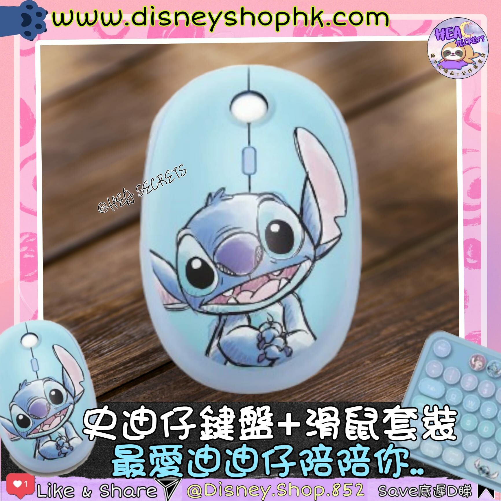 香港迪士尼授權產品 100%正版 i-Smart 迪士尼系列史迪仔無線藍牙鍵盤 史迪仔 電腦配件 Mouse Keyboard
