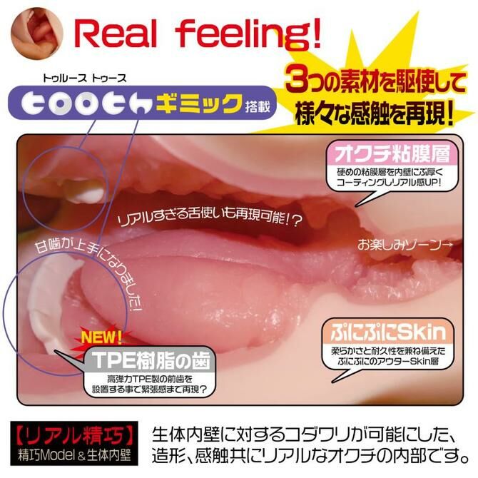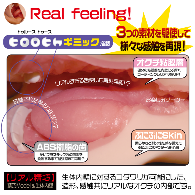 厚めの粘膜素材で口内の質感を再現!挿入時にはリアルすぎる舌が裏筋を舐め上げる!!
