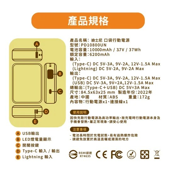 內容:行動電源×1、連接線×1